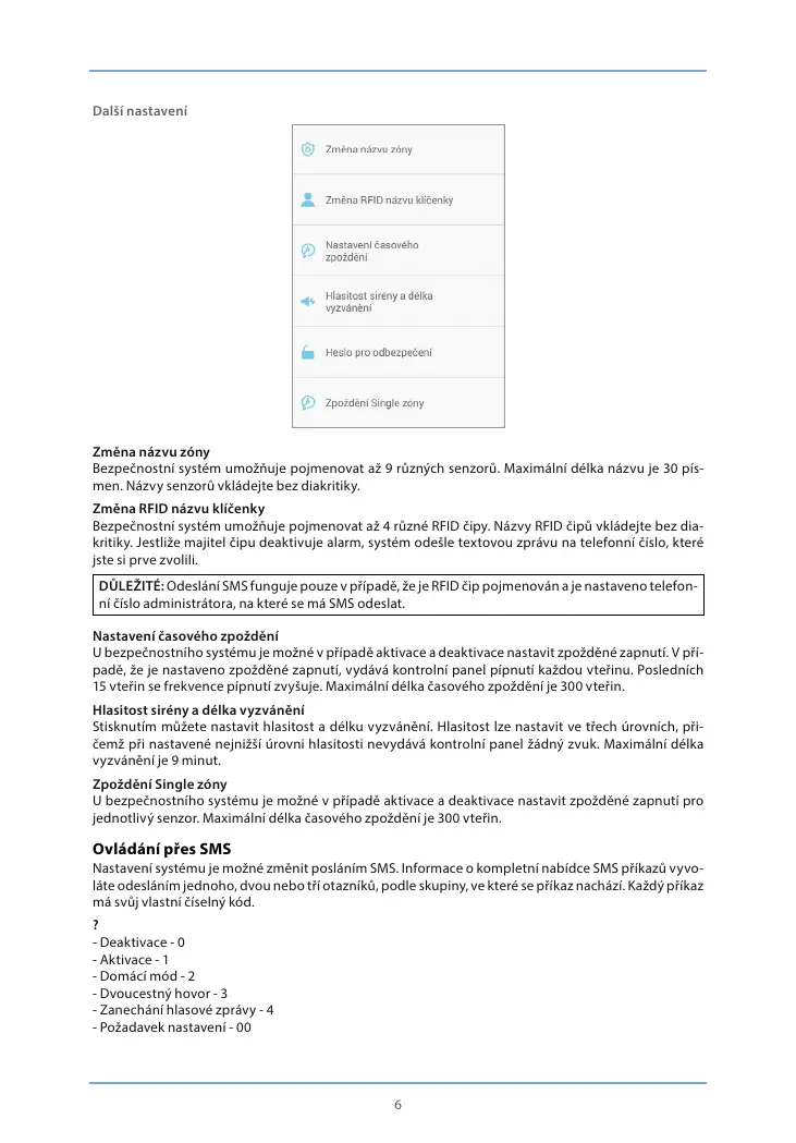 DŮLEŽITÉ: Odeslání SMS funguje pouze v případě, že je RFID čip pojmenován a je nastaveno telefon-