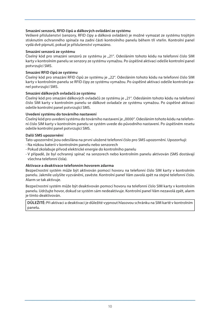 číslo SIM karty v kontrolním panelu se dálkové ovladače ze systému vymažou. Po úspěšné aktivaci