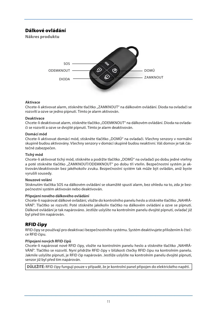 DŮLEŽITÉ: RFID čipy fungují pouze v případě, že je kontrolní panel připojen do elektrického napětí.