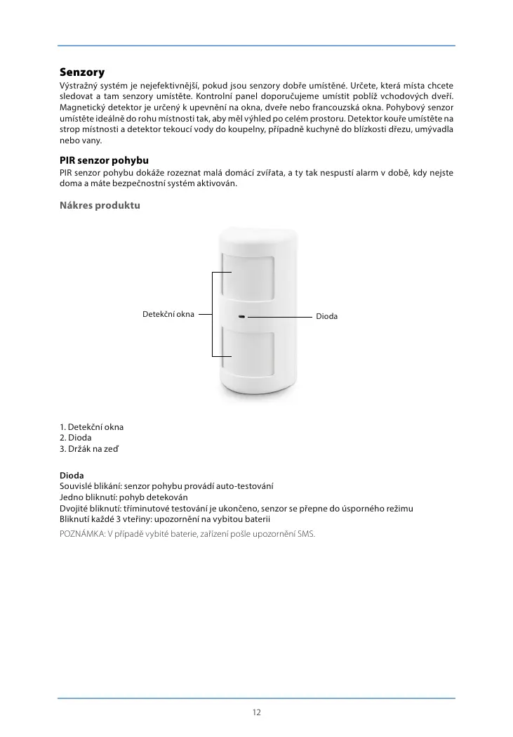 sledovat a tam senzory umístěte. Kontrolní panel doporučujeme umístit poblíž vchodových dveří.
