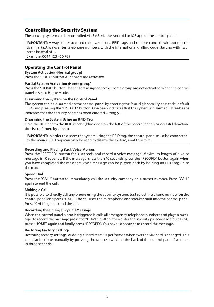to the mains. RFID tags can only be used to disarm the system, anot to arm it.