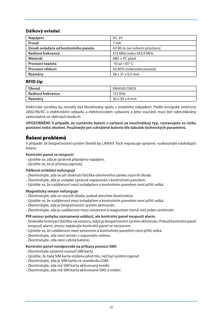 V případě, že bezpečnostní systém Shield by LAMAX Tech nepracuje správně, vyzkoušejte následující