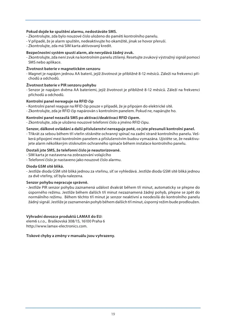 Pokud dojde ke spuštění alarmu, nedostáváte SMS.