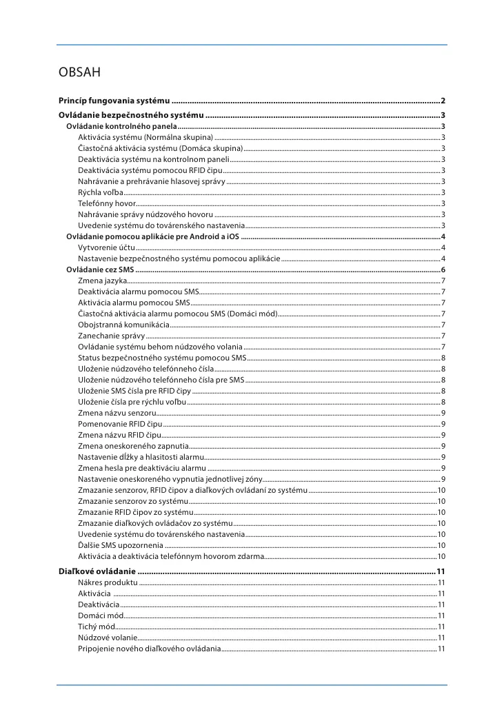Ovládanie bezpečnostného systému ��������������������������������������������������������������������������������������������������������3