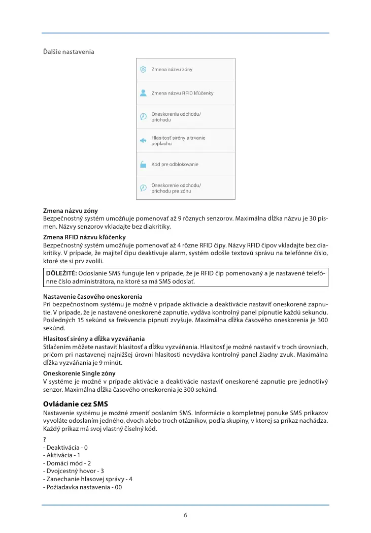DÔLEŽITÉ: Odoslanie SMS funguje len v prípade, že je RFID čip pomenovaný a je nastavené telefó-
