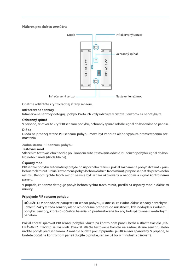 DÔLEŽITÉ: V prípade, že párujete PIR senzor pohybu, uistite sa, že žiadne ďalšie senzory nezachytia