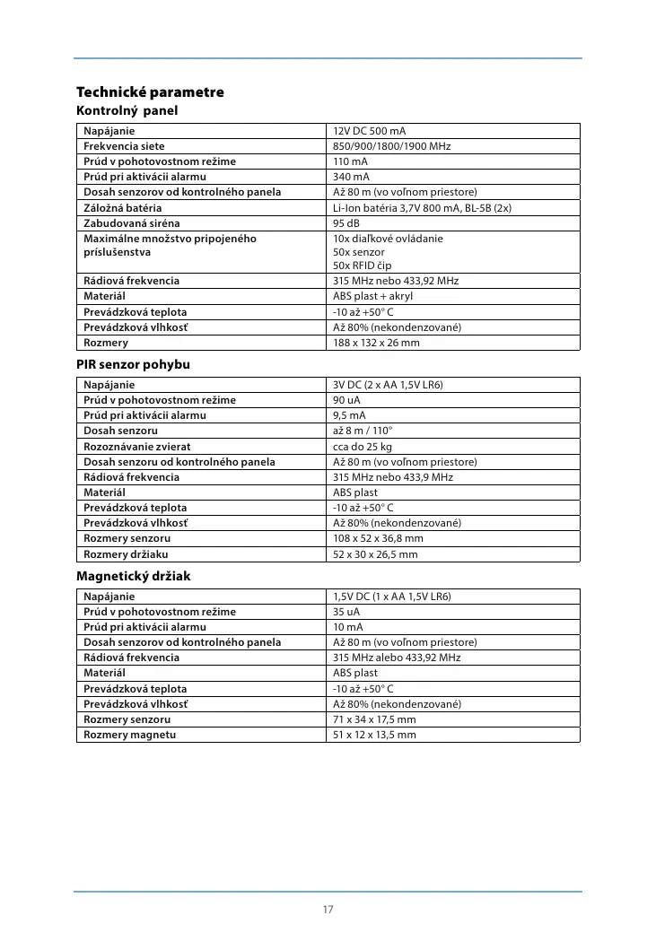 Dosah senzorov od kontrolného panela Až 80 m (vo voľnom priestore)
