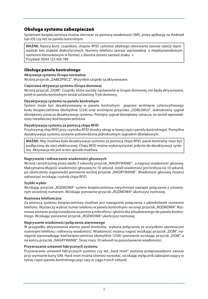 WAŻNE: Aby możliwa była dezaktywacja systemu za pomocą chipa RFID, panel kontrolny musi być