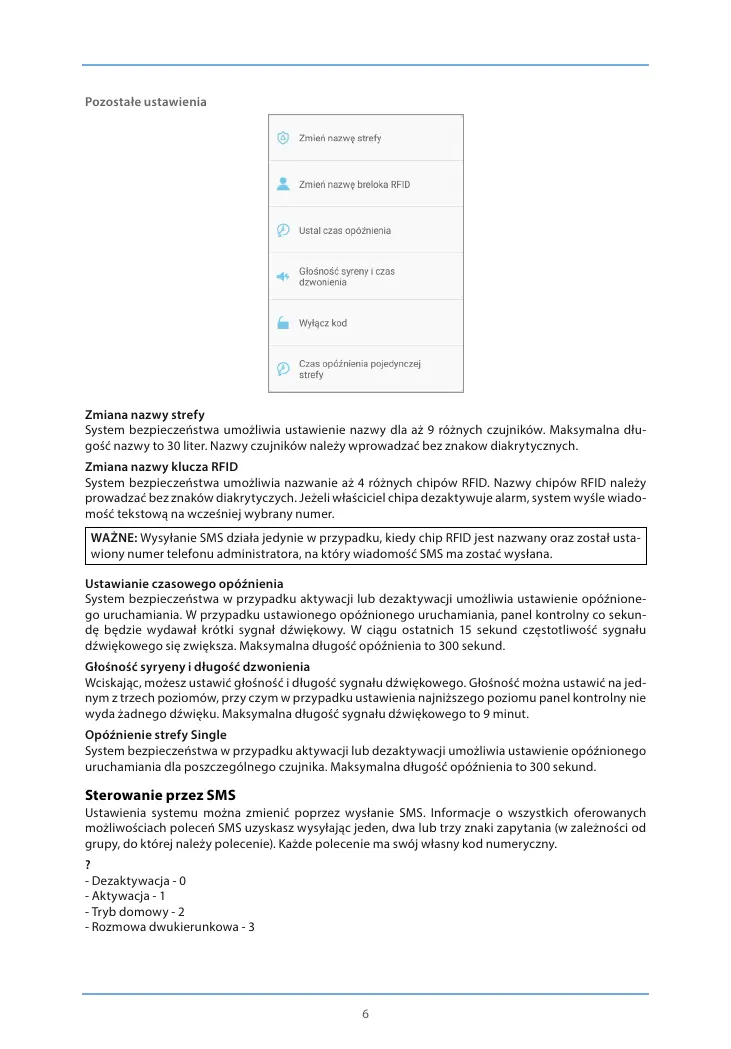 Ustawienia systemu można zmienić poprzez wysłanie SMS. Informacje o wszystkich oferowanych
