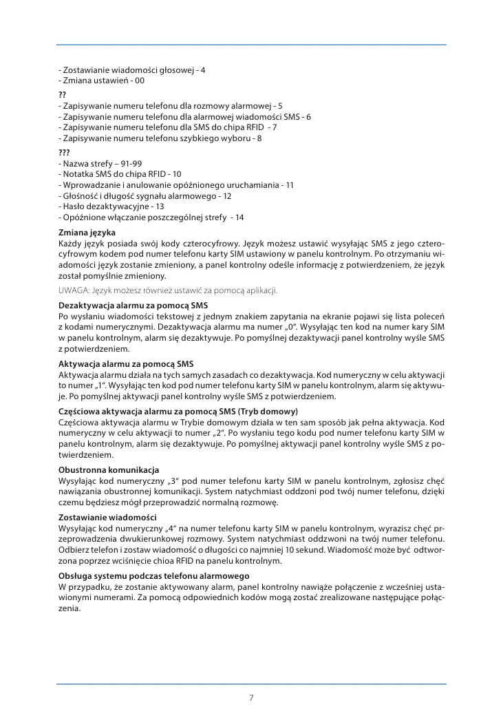- Zapisywanie numeru telefonu dla alarmowej wiadomości SMS - 6