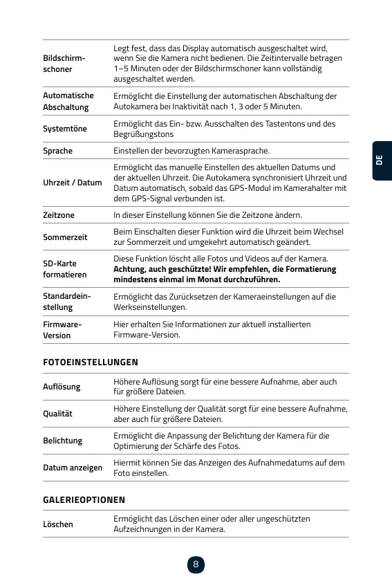 der aktuellen Uhrzeit. Die Autokamera synchronisiert Uhrzeit und