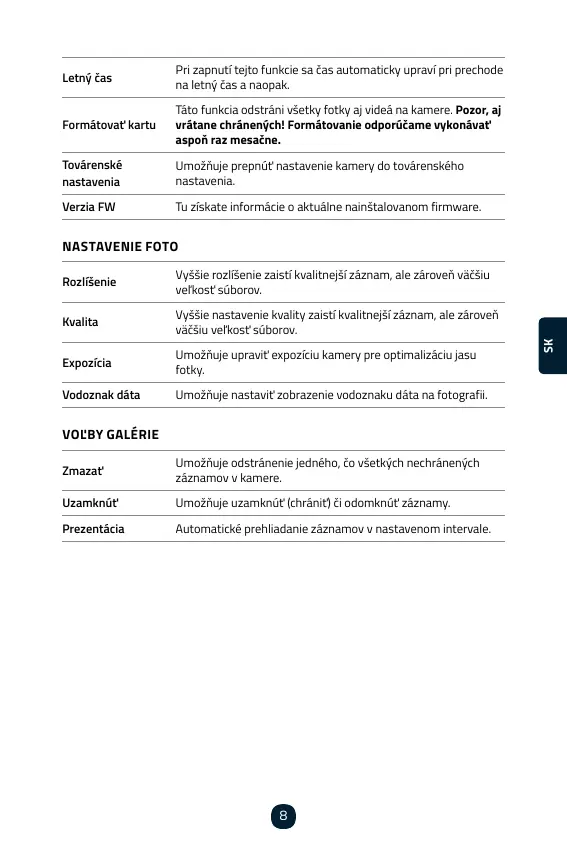 Táto funkcia odstráni všetky fotky aj videá na kamere.