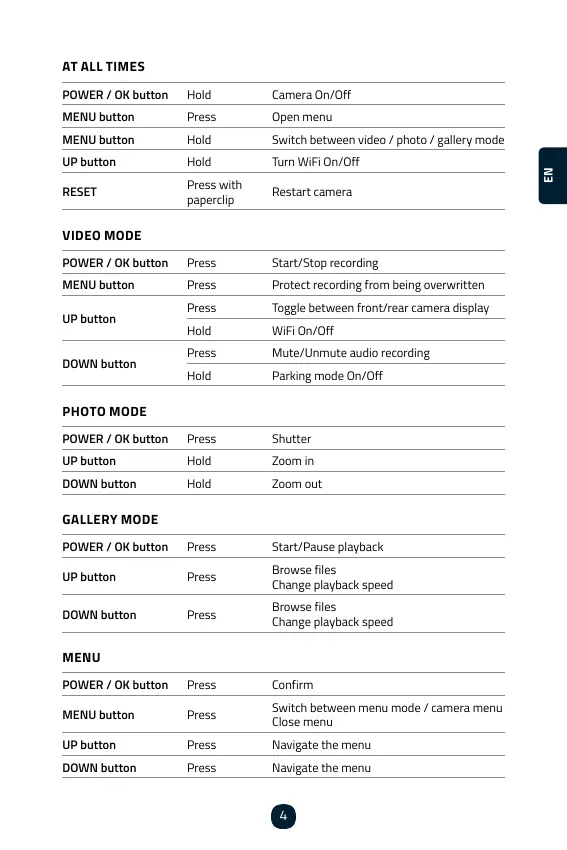 DOWN button Navigate the menu