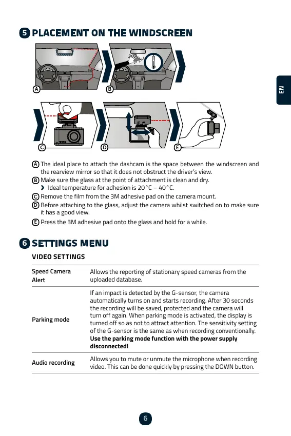 Before attaching to the glass, adjust the camera whilst switched on to make sure