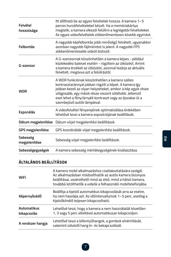 Sebességegységek A kamera sebesség mértékegységének kiválasztása.