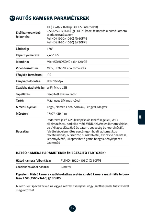 Hátsó kamera felbontása:
