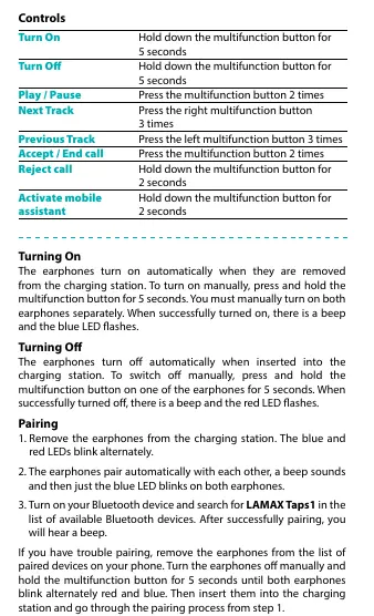 3. Turn on your Bluetooth device and search for LAMAX Taps1 in the
