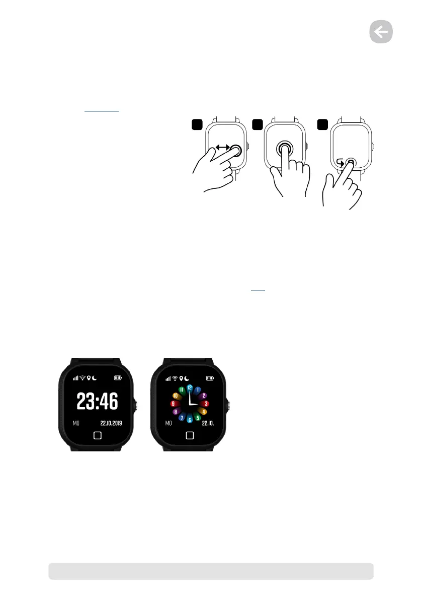 Die LAMAX WatchY2 wird durch Gesten auf dem Touchdisplay, die Taste „Zurück“ und die