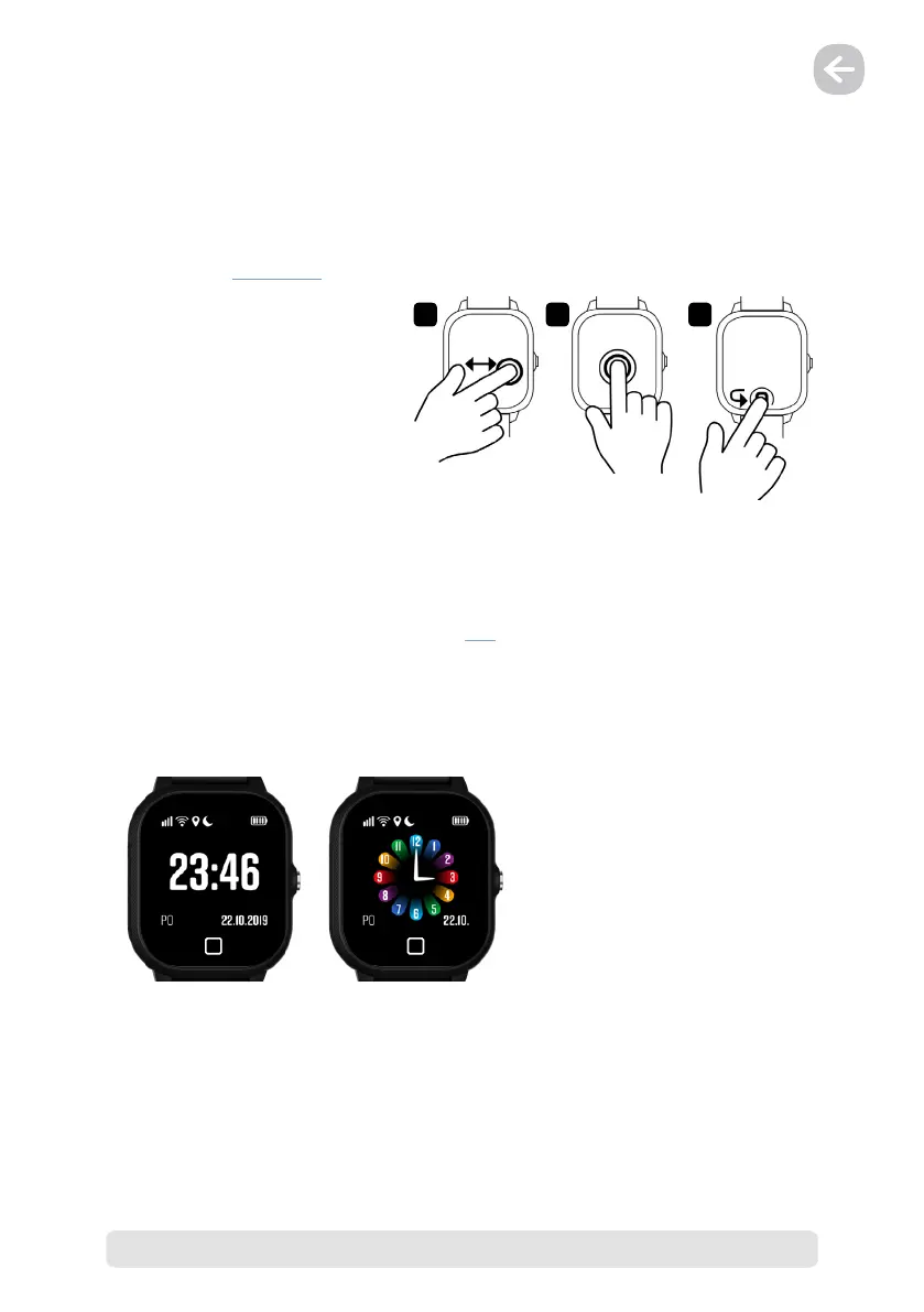 Zariadenie LAMAX WatchY2 sa ovláda pomocou gest na dotykovej obrazovke, tlačidla „Späť“
