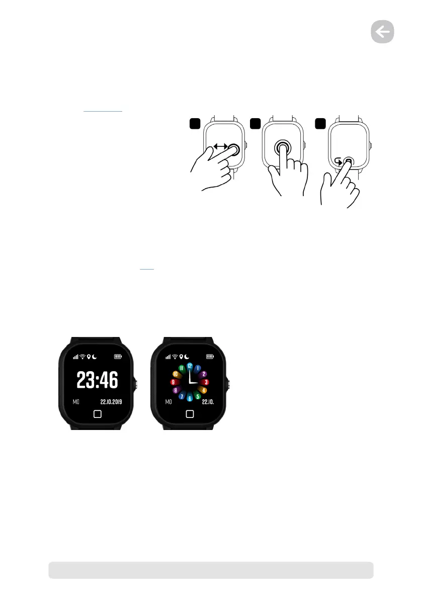 The LAMAX WatchY2 is controlled using gestures on the touchscreen, the „Back“ button and