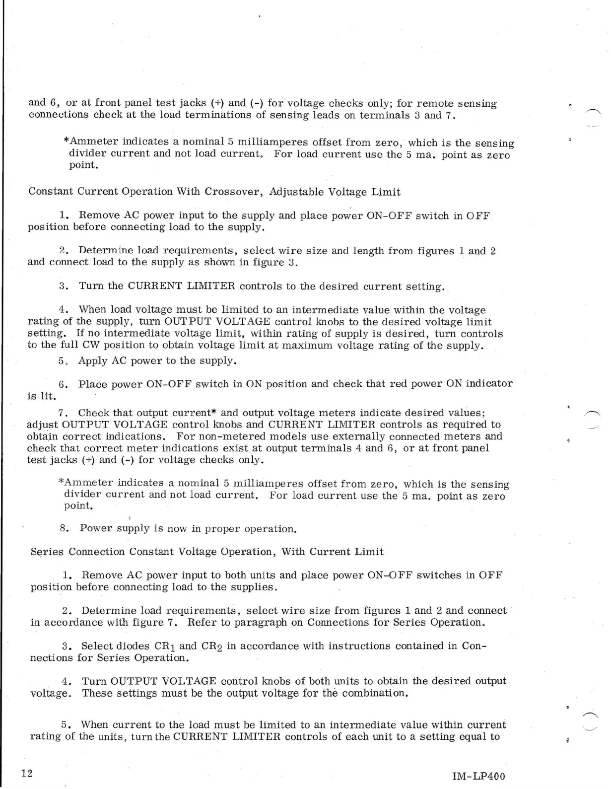 Lambda LP Series - Operating Procedures - Current and Series; Constant Current Operation; Series Connection - Constant Voltage