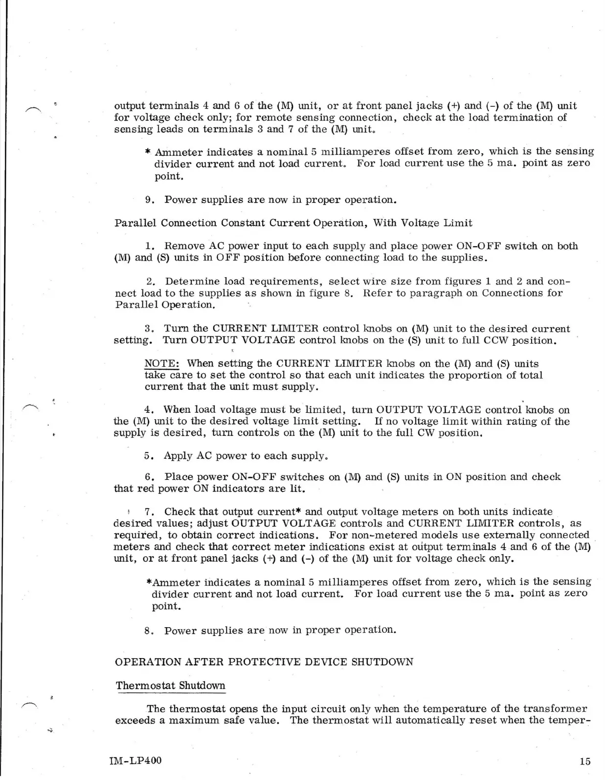 Lambda LP Series - Operating Procedures - Parallel Connection (Cont.); Parallel Connection - Constant Voltage Steps; Parallel Connection - Constant Current