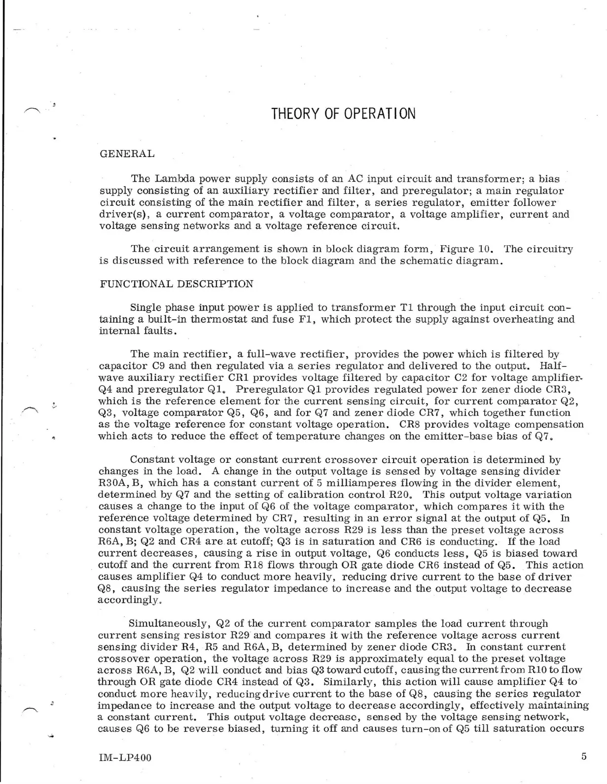 Lambda LP Series - Theory of Operation; General Circuit Description; Functional Description
