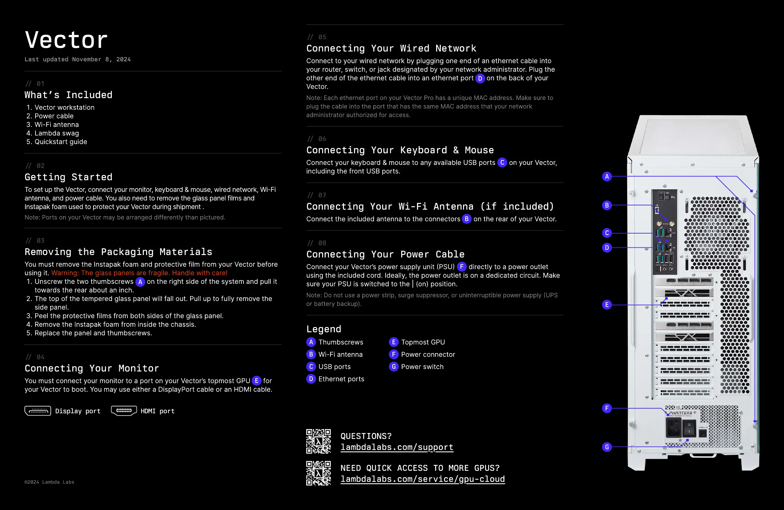 To set up the Vector, connect your monitor, keyboard & mouse, wired network, Wi-Fi