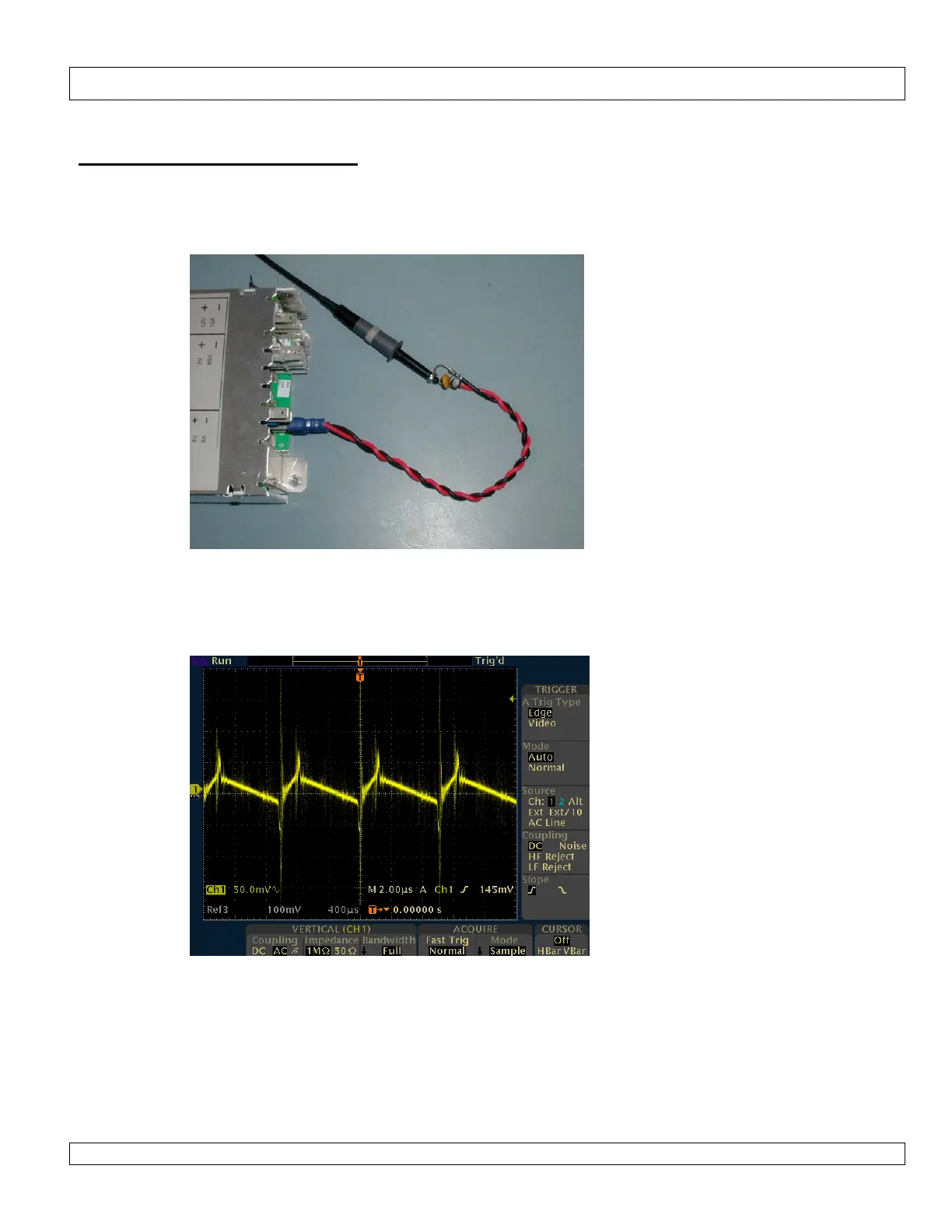 electrolytic capacitor and 0.1uF ceramic capacitor. The earth wire of the oscilloscope probe should be as short as