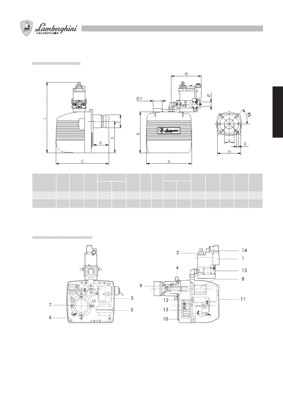 Lamborghini Caloreclima EM 3 ST-E - Dimensions mm; Main Components