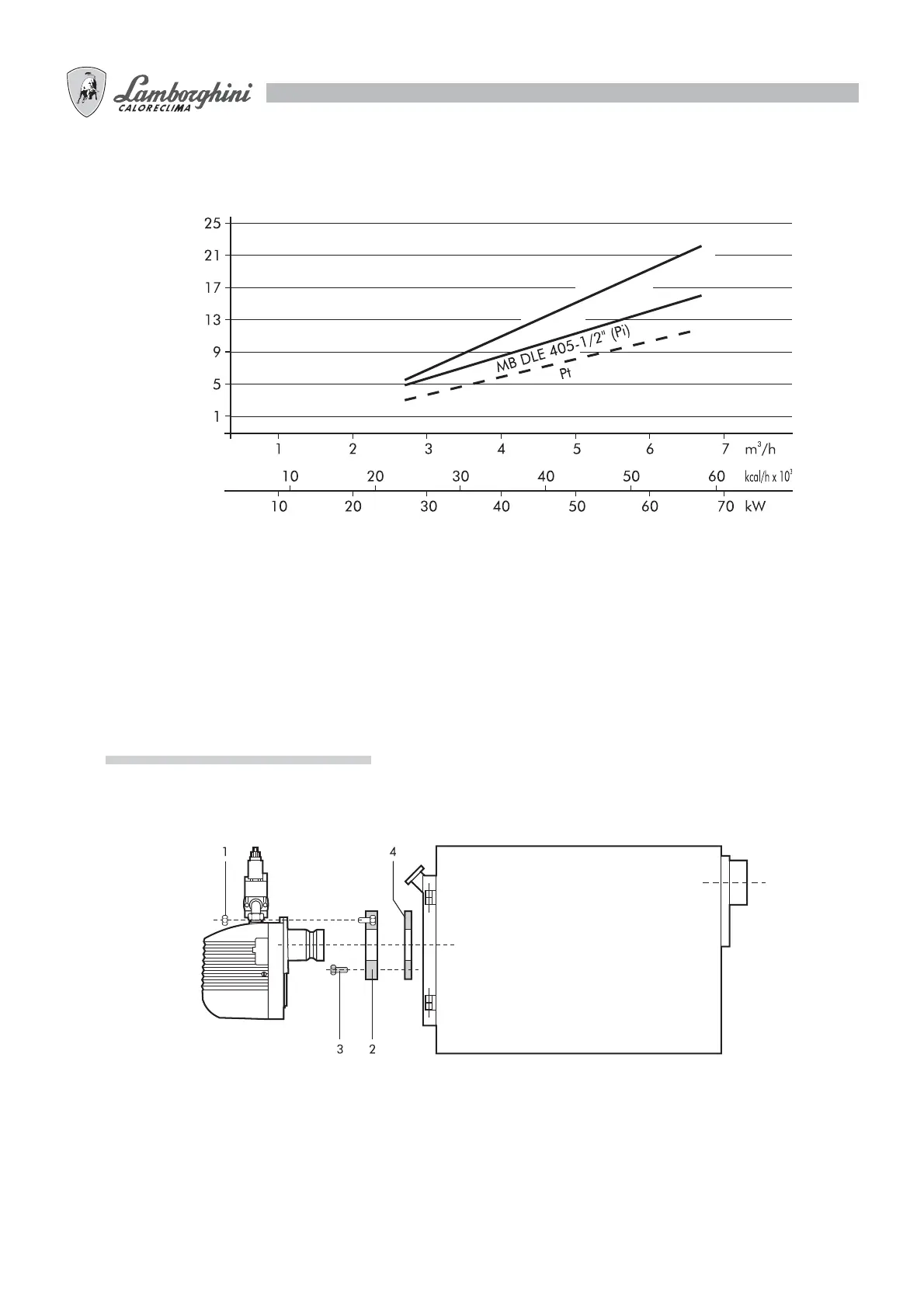 Fix flange 2 to the boiler using 4 screws 3 interposing the insulation gasket 4. Insert the burner in the flange so that the