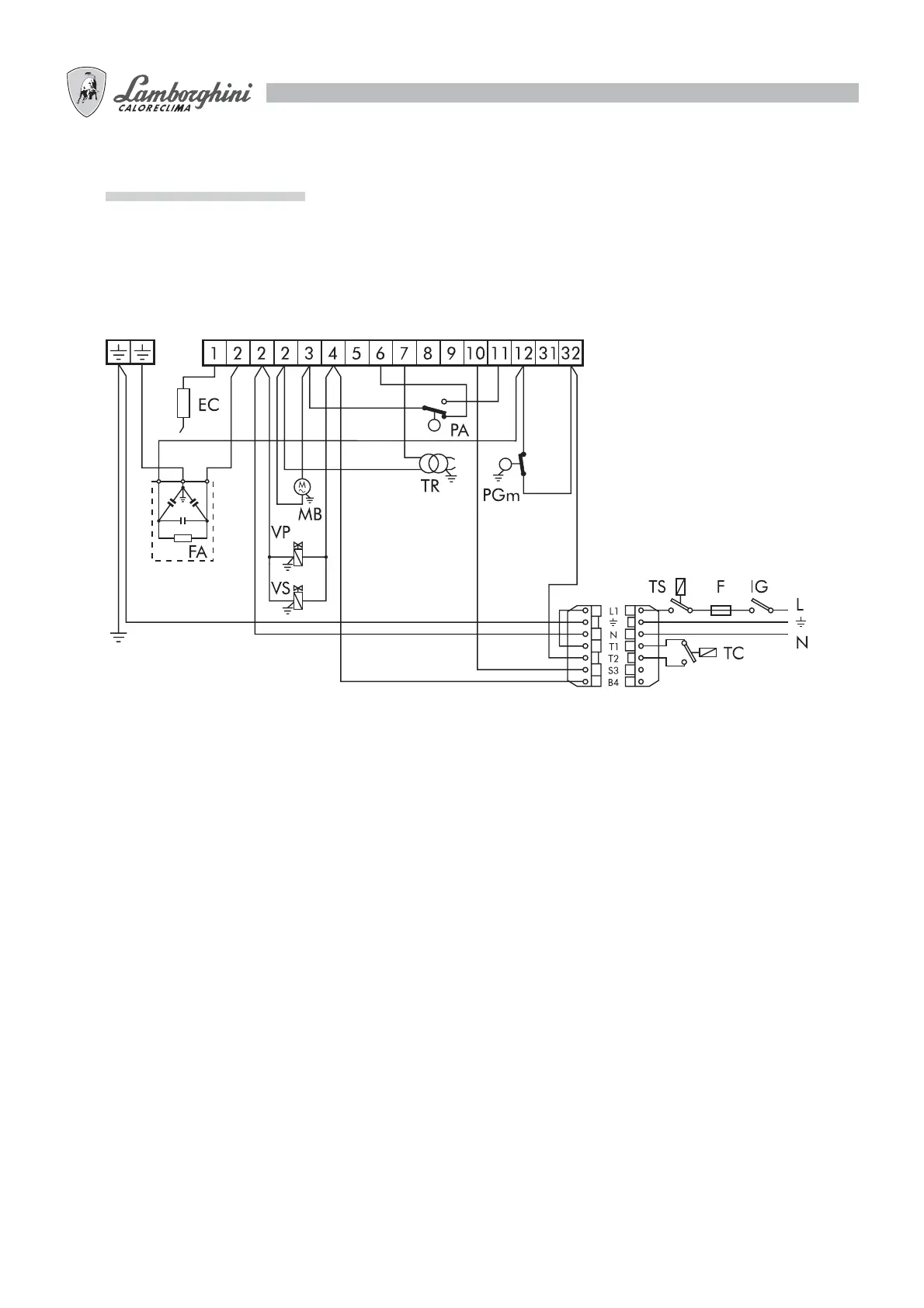- Der Anschluss der Erdung an das Klemmenbrett des Brenners muss mit einem Kabel ausgeführt werden, das minde-