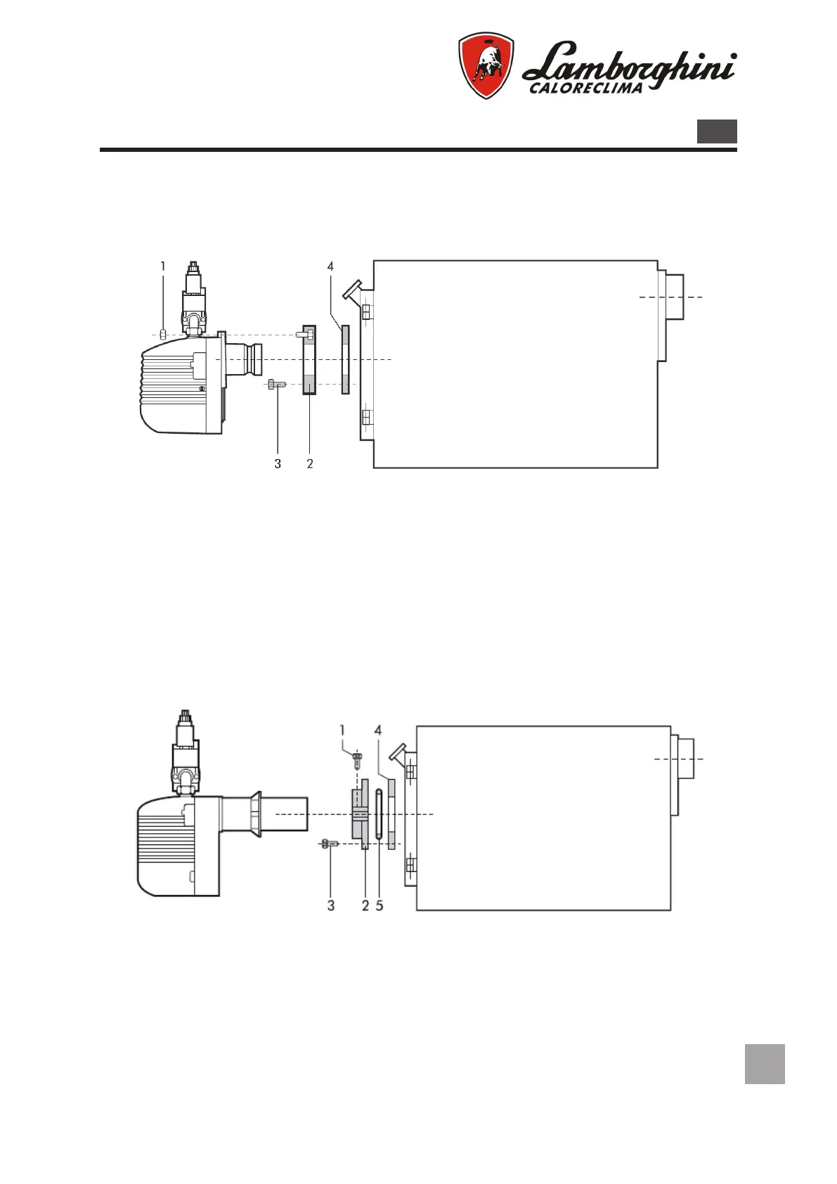 Fix ange 2 to the boiler using 4 screws 3 interposing the insulation gasket 4. Insert the burner