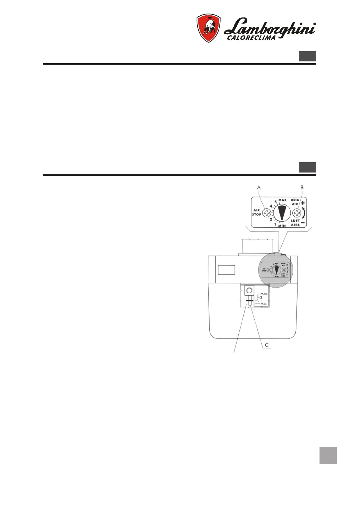 Adjust the combustion head by acting on the screw C according to the indications