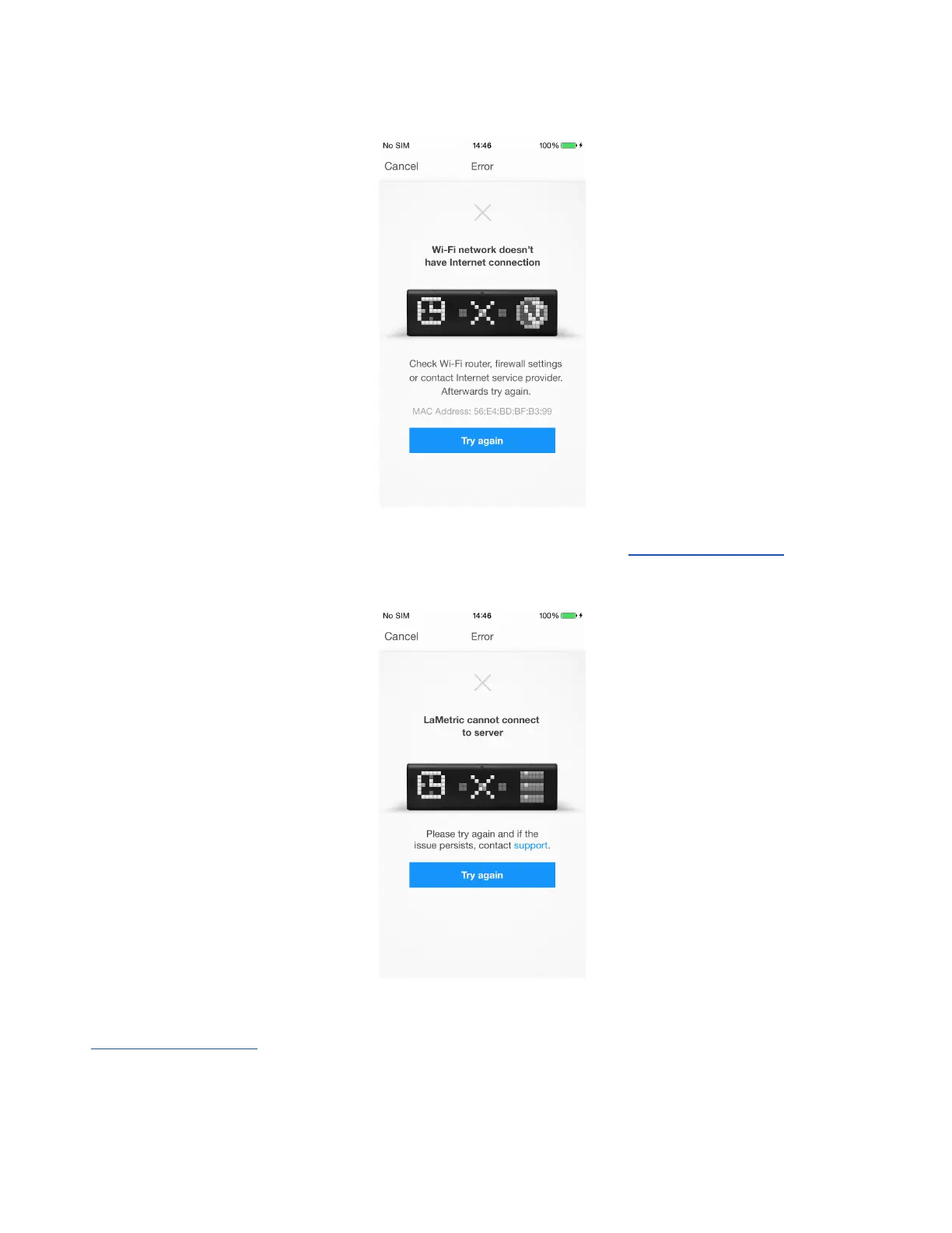 5. If you see the following screen, try to configure LaMetic again. Read 3.3.2.Configuration to find out