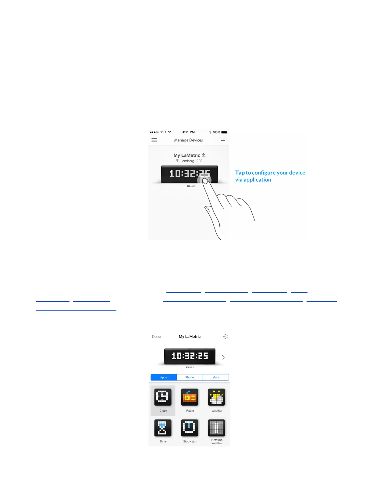 smartphone or tablet and you can manage it via the mobile application. Tap LaMetric on this screen.