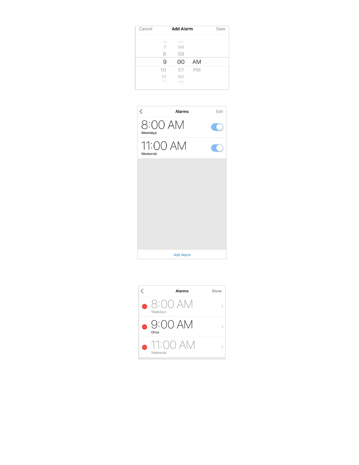 You can remove or edit alarms . Tap ' Edit ' to start: