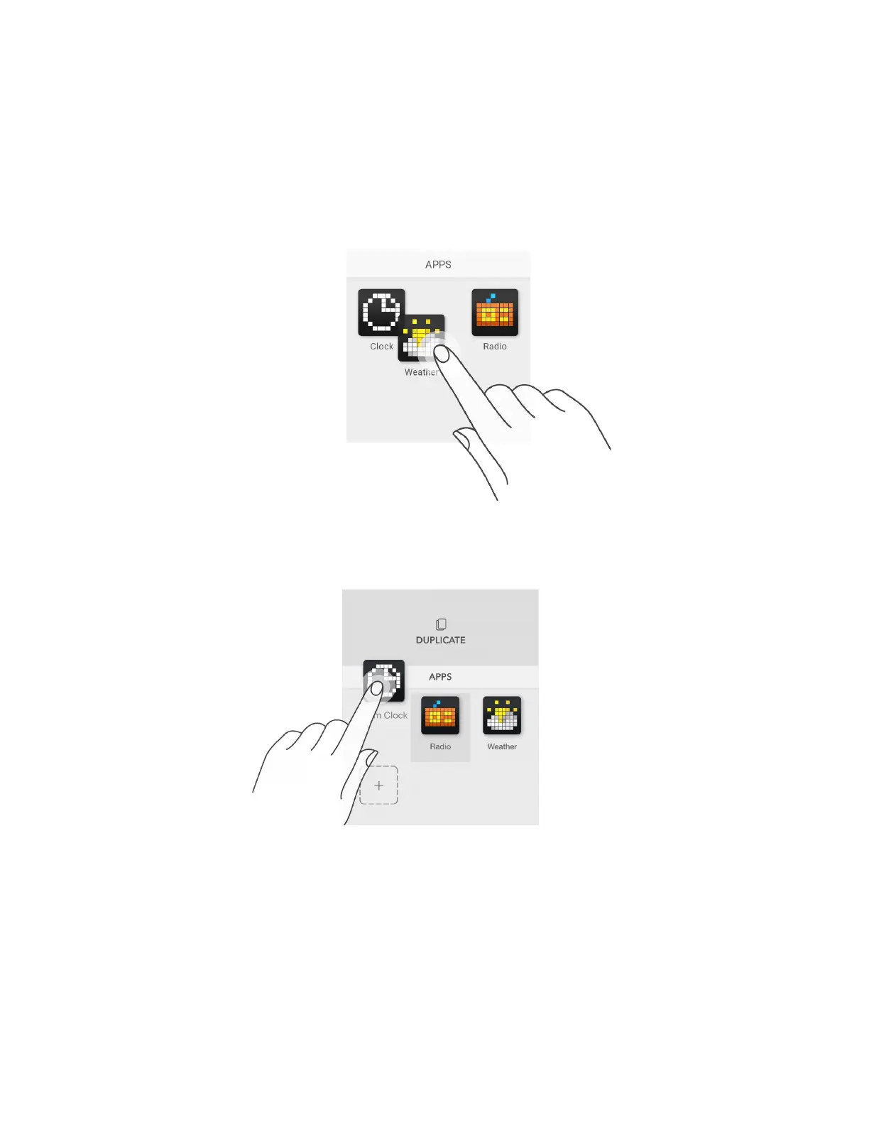 On the screen with apps, you can duplicate, remove or reorder apps.