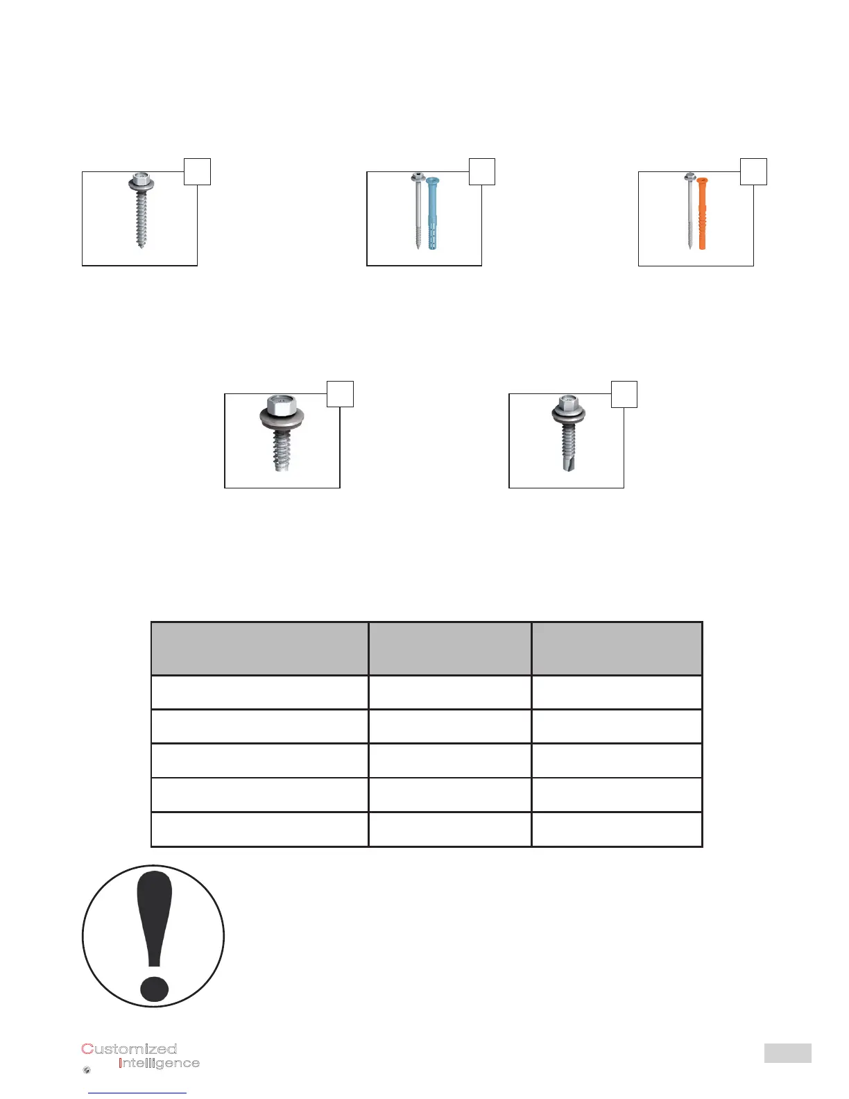 Equivalent fasteners with technical approval could also be used.