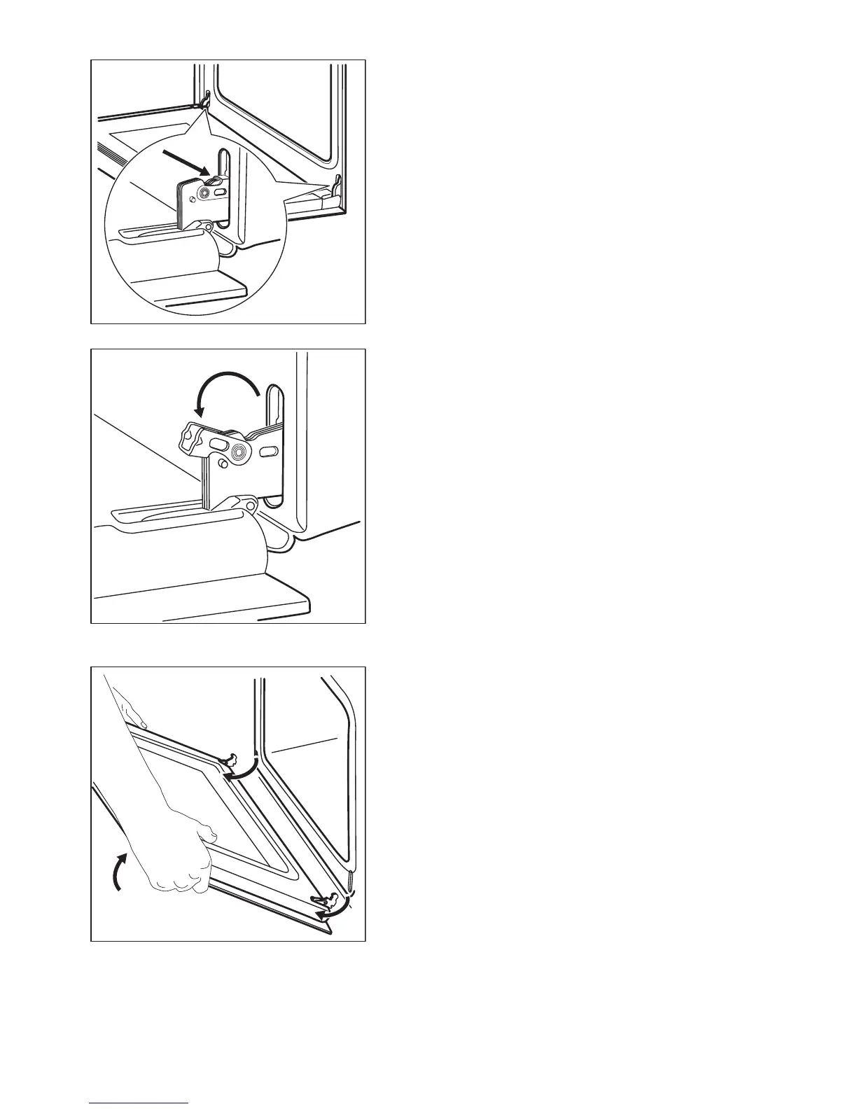 3. Close the oven door halfway to the first opening position. Then pull forward and remove