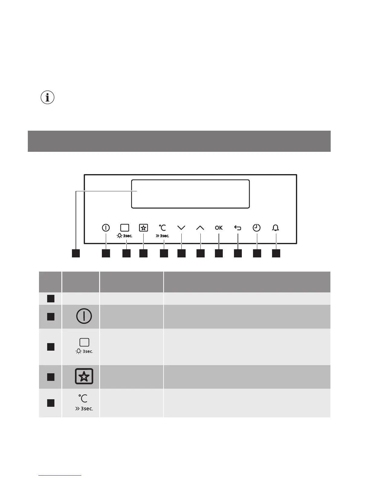 ture in the appliance. Press the field for 3 seconds to