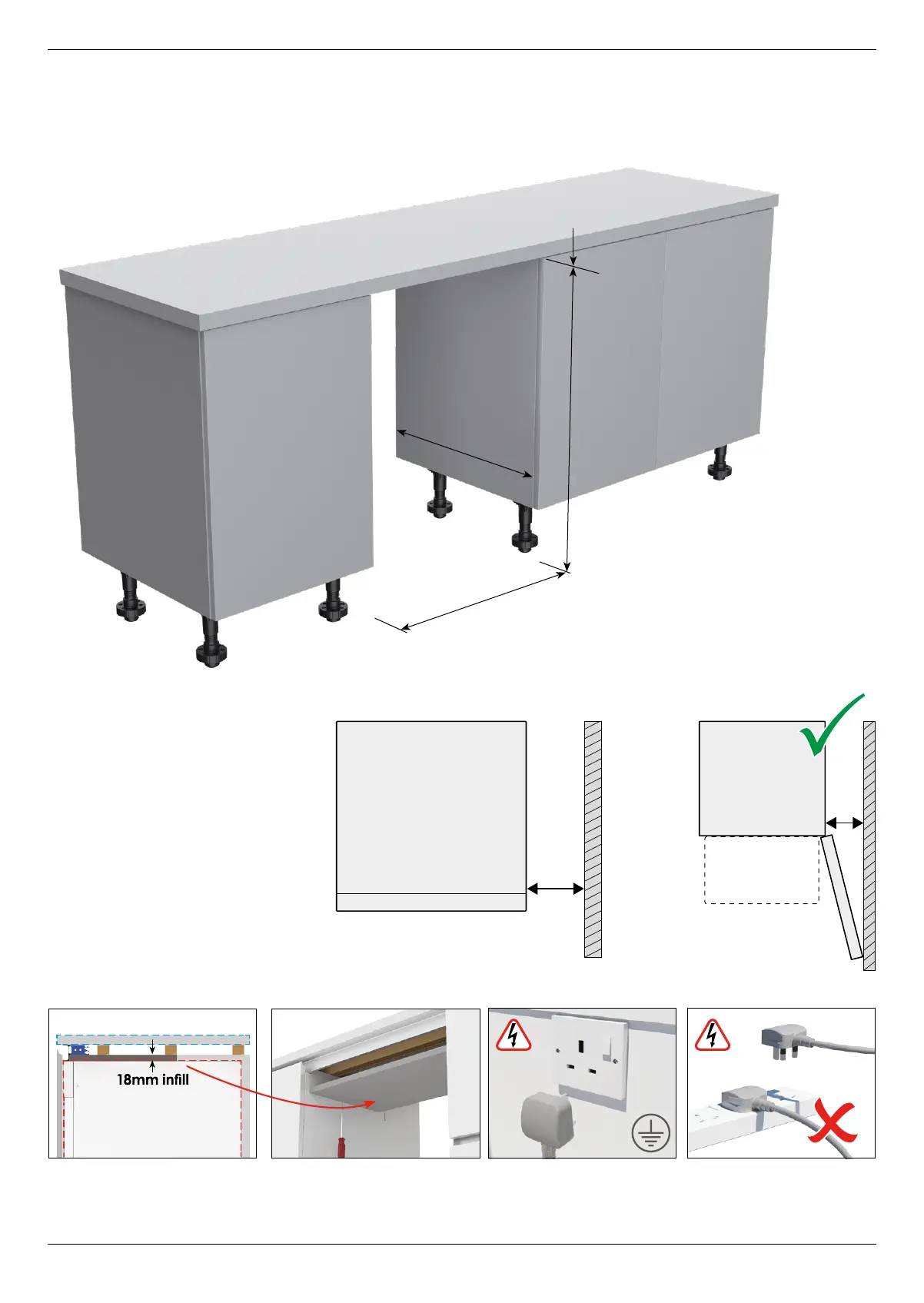 worktop, level with bottom