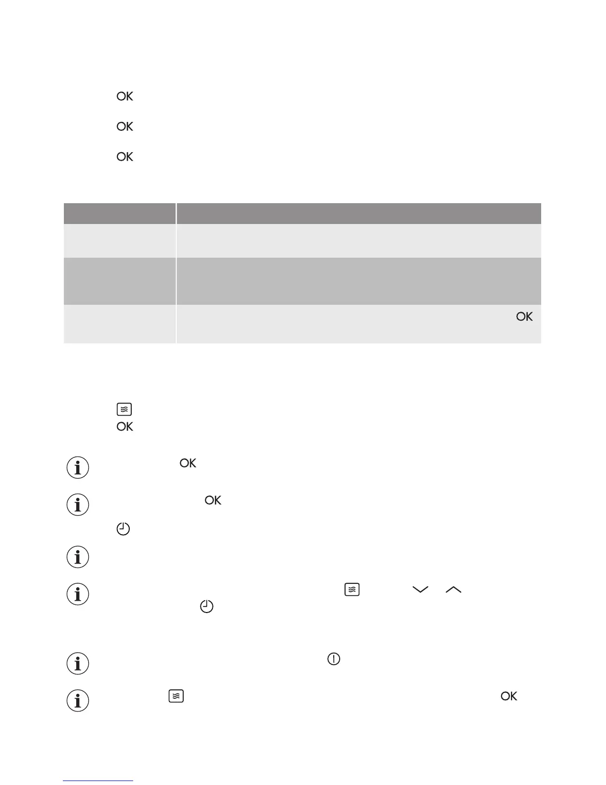 If you press or open the door, the function stops. To start it again, press .
