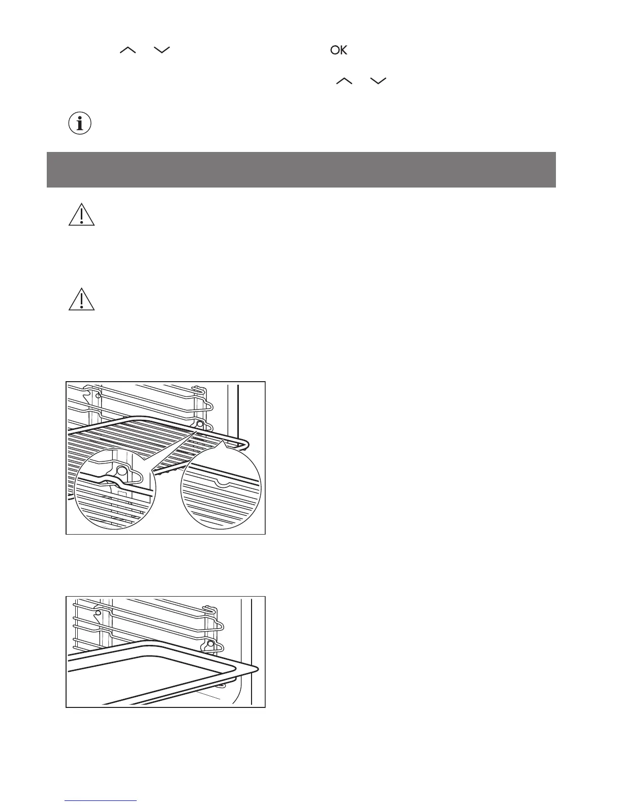 Push the baking tray between the guide bars of the shelf support.