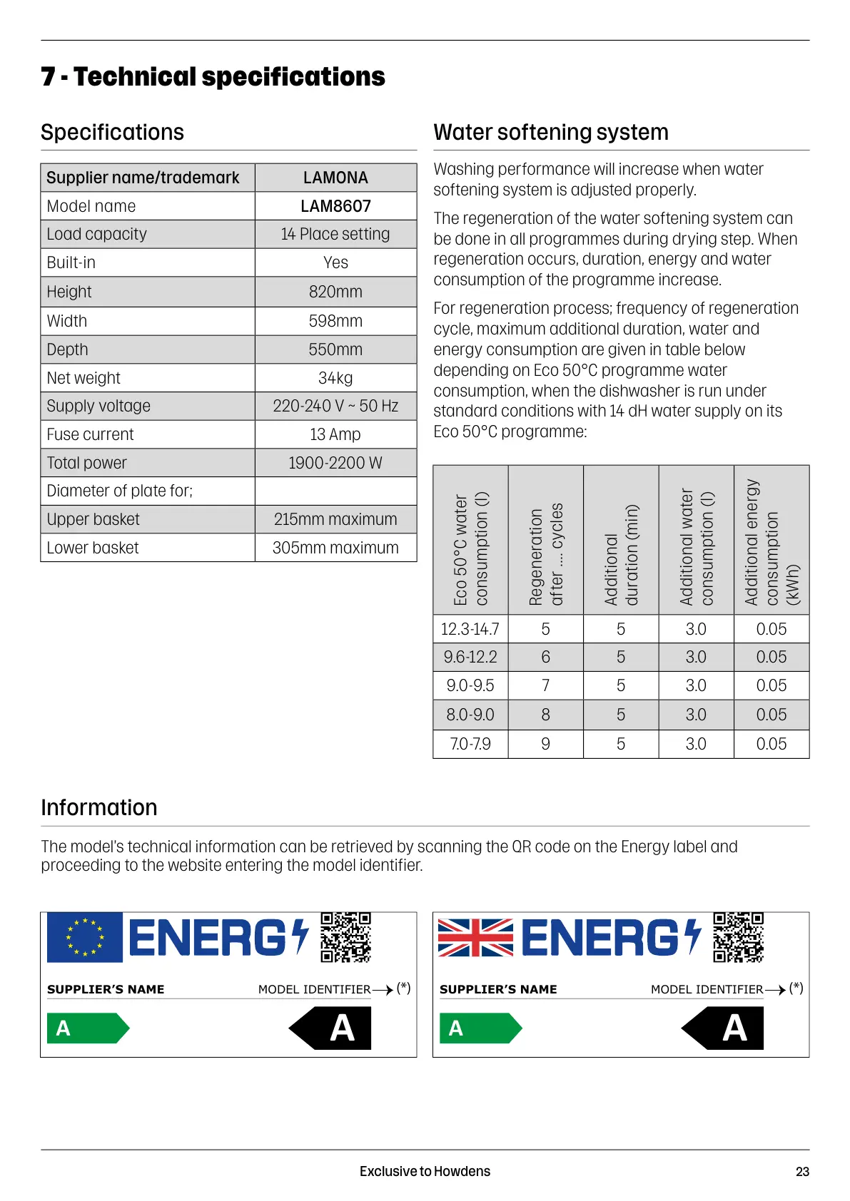 The model’s technical information can be retrieved by scanning the QR code on the Energy label and
