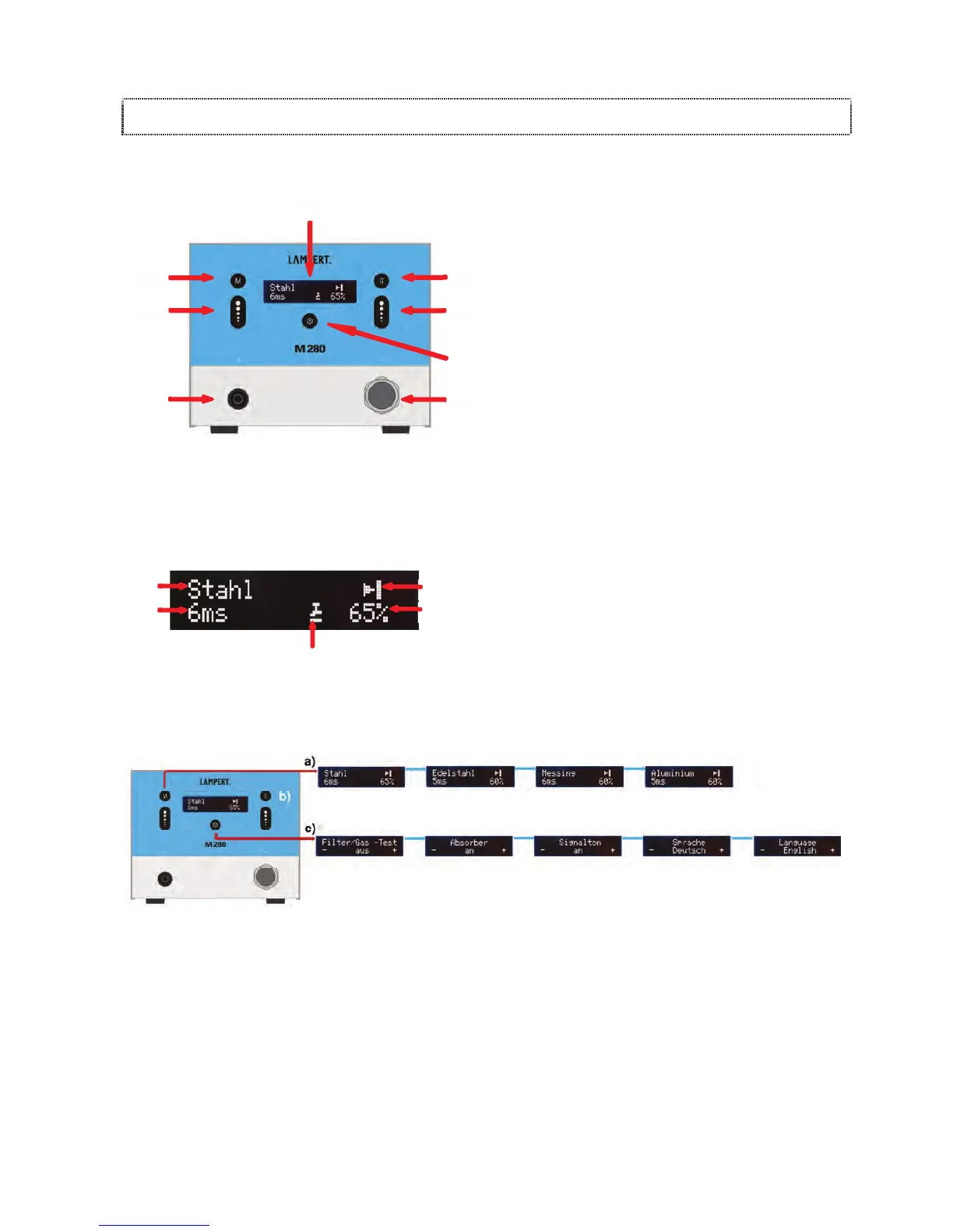 ONCE IT IS SWITCHED ON, THE „M280“ STARTS UP IN ITS MAIN MENU. THE FOLLOWING USER LEVELS CAN BE