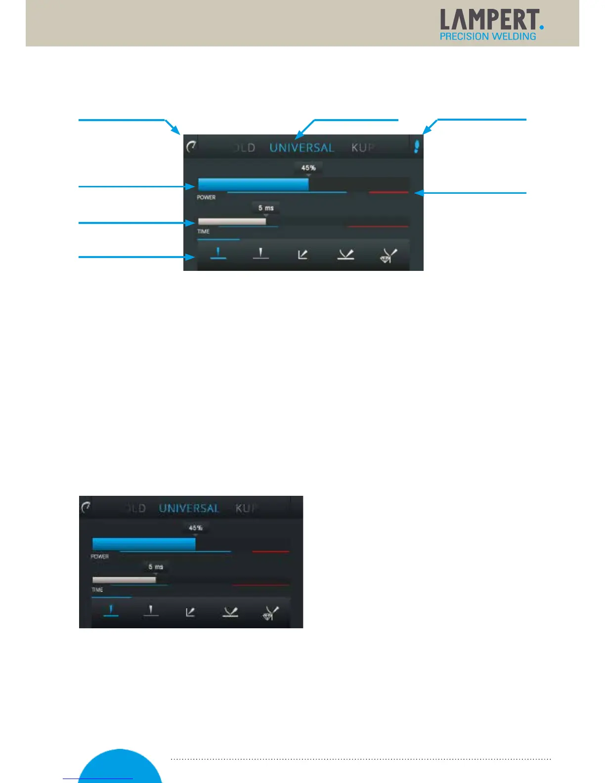 bytapping with the finger. The power scale (2), time scale (3) and menu field (5) can be changed with