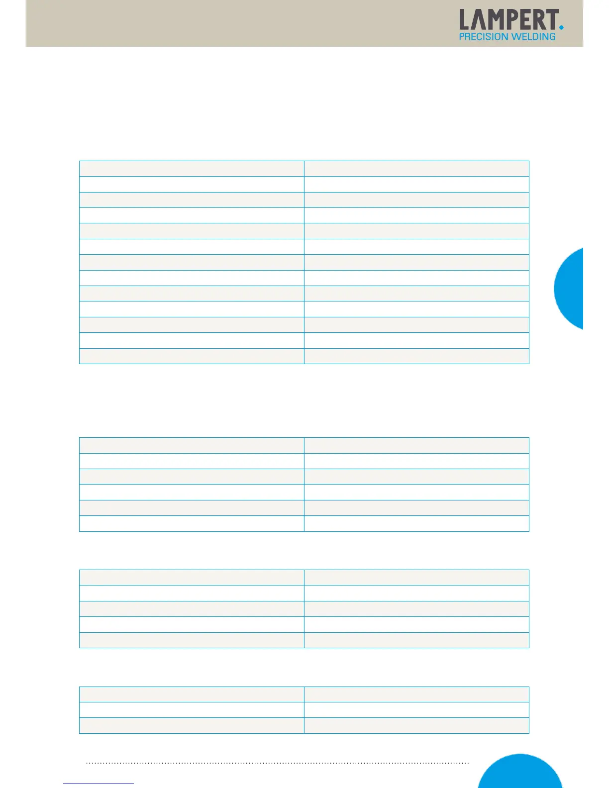 10.1 Technical data for the welding device