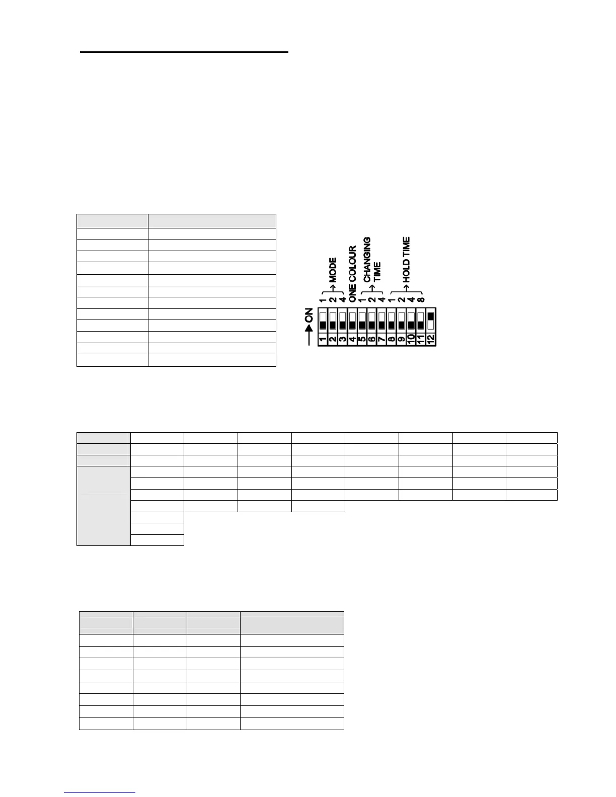 Setting the dip-switches 8, 9, 10, 11, it is possible to choose the colour holding time for each colour.