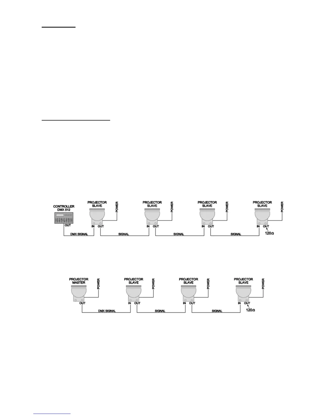 If the projectors are driven by a DMX controller or projector Master drive other projectors Slave, they need to be connected